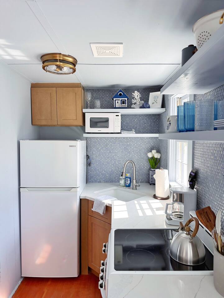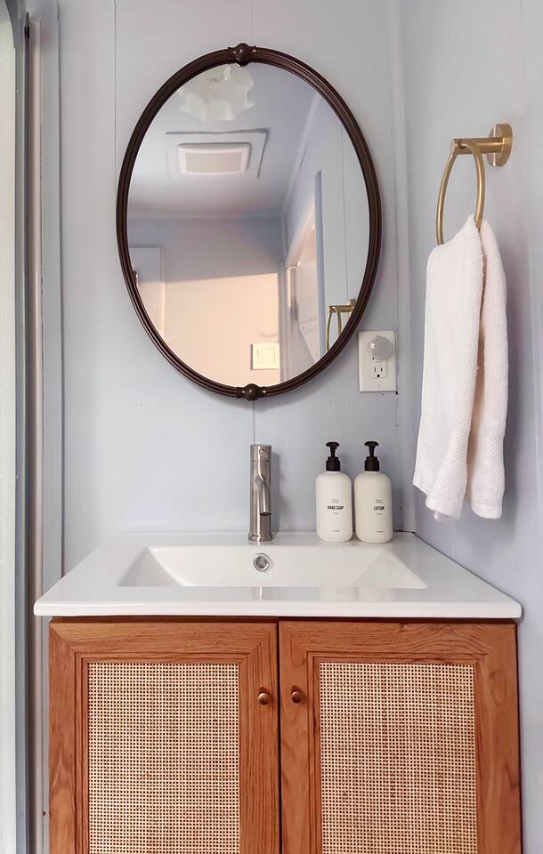 Formerly known as Michaelโs Cottages-Sky Cottage is a tiny space filled with a calming blue color of the sky. It is thoughtfully redone and designed Our tiny home is 320 sq ft and truly feels like a mini doll house! It has everything a bigger house has just tiny! With a cute private screened in porch and patio fire pit area this cottage will certainly be a memorable one!